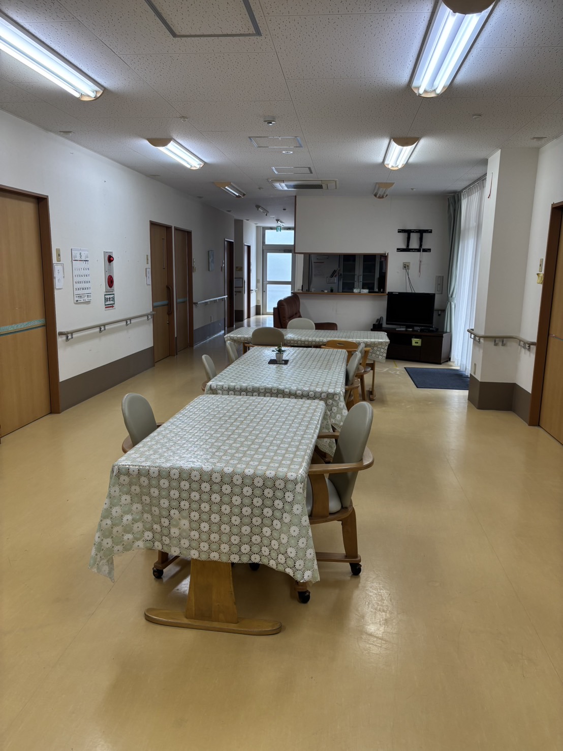 主な設備 フローリング・フラットフロア・照明器具・ナースコール・エアコン・空調換気設備・地上波アンテナ・トイレ・洗面台・玄関ホール・食品庫・応接室・厨房室・汚物処理室、フロント・食堂・リネン室・共用トイレ・介護浴室(個浴・機械浴)